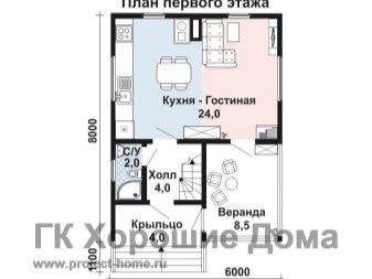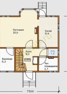 Добро решение може да бъде двуетажна къща, на първия етаж на която има втора светлина. Има и техническо помещение и 20-метрова всекидневна. Залата е с площ от 9 кв. м, а кухнята е 0,4 кв. м повече. Предоставихме и миниатюрна баня и хубава веранда.. Горният ред е предназначен за: