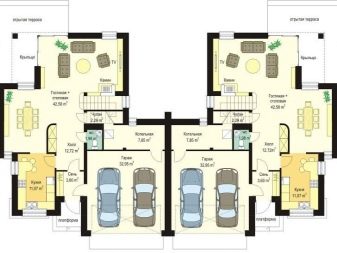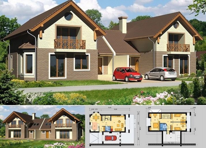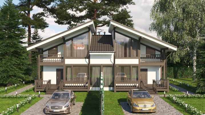 Правоъгълни, квадратни, U-образни и асиметрични форми са доста често срещани в строителството, но огледалният дизайн е най-популярният вариант. В този случай входовете могат да бъдат разположени отстрани, отстрани на фасадата или до, в центъра. Къщите -близнаци са изградени от камък (тухли, блокове) или дървени (дървен материал, дървен материал), възможно е да се издигнат рамкови сгради. Проектите включват къщи с тераса, вградени или отделни гаражи и други.