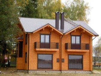 Двуетажна къща от профилиран дървен материал за две семейства изглежда строго и лаконично. Два отделни входа изолират семейства от различни поколения, но не отделят.