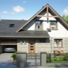 - Така че комбинация от бели и дървесни жълти цветове може да изглежда много привлекателна. В тази версия тъмнокафявият покрив с прозорци се възприема относително добре. Богатата тъмна врата на входа на гаража се оказва привлекателен детайл. Като цяло жилището се вписва идеално в околната среда..