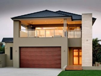 - Струва си да разгледаме по-отблизо двуетажна къща с гараж. Важното му предимство е оборудването на добър балкон. Районът пред жилището е озеленен и декориран много атрактивно. Архитектите умело са избрали комбинация от тъмни и бели цветове.