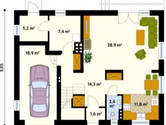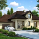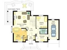 Можете също да разгледате алтернативно решение.. Снимката показва къща с гараж, която заема почти 19 кв. м. Това не е толкова малко – подобна площ е достатъчна за паркирането на повечето джипове. Разработчиците са предвидили както “втора светлина”, така и предверие от 1,6 кв. М. м.