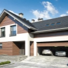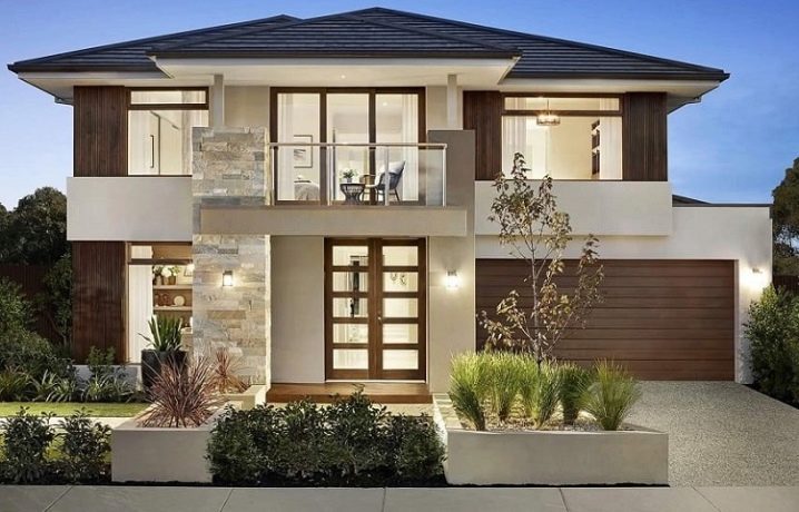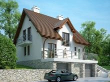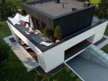 - Струва си да разгледаме по-отблизо двуетажна къща с гараж. Важното му предимство е оборудването на добър балкон. Районът пред жилището е озеленен и декориран много атрактивно. Архитектите умело са избрали комбинация от тъмни и бели цветове.
