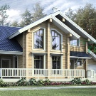 - Къщата с лек люляк покрив също заслужава внимание. В центъра тя има сложна издатина – обаче, като останалата част от сградата. Резултатът е покрита веранда, украсена с масивни колони. Дизайнът на сградата е доминиран от светло жълт тон. Жилището изглежда дори незабележимо, но лаконично.
