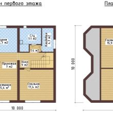 Преди да извършите директно работа по изграждането на конструкция, трябва да изберете подходящ проект за къща 10×10. Всички те попадат в две основни категории: общи и проектирани по поръчка.. Типичните проекти се разпространяват в Интернет. Те могат да бъдат много различни: имат един или два етажа, тераса, балкон и различни оформления. Въпреки това, ако парцелът за строителство има свои собствени характеристики, тогава можете да поръчате проект, в който те ще бъдат взети предвид.