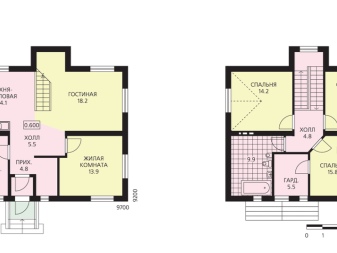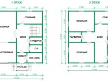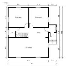 Най-добрият вариант за двуетажна къща предвижда поставянето на общи стаи на първия етаж, спални на втория. Можете също така да създадете допълнително таванско помещение или гараж. Ако покривът на селска къща е направен с голям наклон, също е възможно да се предвиди създаването на таванско или таванско пространство.