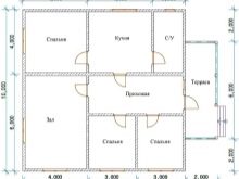 Поради относително малкия размер на построената къща, оформлението предвижда създаването само на няколко стаи. Основната разлика се отнася до вида на използвания материал. Носещите стени могат да бъдат издигнати: