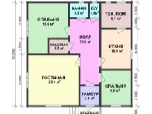 За да направи къщата по -удобна, опцията с две спални и кухня често се допълва от друга всекидневна.. Тази опция е подходяща за голямо семейство. Спалните стаи могат да бъдат подредени в кръг.