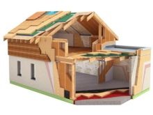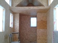 - Фронтоните са рамково-панелни, дървени 4 * 15 м, облицовани с дъски с дебелина до 2 см, паро и топлоизолирани, както в предишния случай. Обшивка на ъгли, корнизи – за защита от летните жеги и зимните студове.