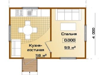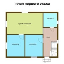 Готови строителни проекти 4 на 6 метра могат да бъдат поръчани от специалисти или дори просто да бъдат изтеглени в интернет. Това се дължи на факта, че те лесно се адаптират към определени условия. Например типичен проект с един етаж включва хол, комбиниран със спалня (8 кв. М.), детска стая (5 кв. М.), кухня, баня и антре. Ако желаете, можете да оборудвате таванския етаж, на който да прехвърлите спалните и поради освободеното пространство да разширите кухнята.