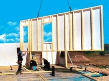Опция щит се състои от готови конструкции, монтажът започва със свързването на стените, които се считат за носещи. След това се извършва инсталирането на прегради между стаите. На последния етап се издига покривът.