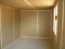 - Тип рамка се поставя изключително върху основата. Освен това се извършва монтажът на рафтовата система и опаковането на решетката. След монтажа на покрива рамката трябва да бъде обшита с минерална вата и ПДЧ.