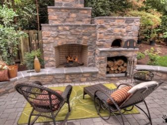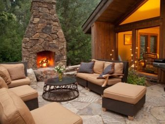 Външната камина е друга характеристика на финландския стил. Той се намира изцяло извън къщата и много често е прикрепен отстрани на главния вход. Обикновено се събира от естествени камъни. Коминът на камината се простира нагоре, отивайки в небето, а горивната камера е ориентирана към улицата.