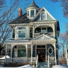 Викторианският стил възниква през първата половина на 19 век. Такива сгради имат ефекта на „къща за кукли“, където има добре обмислена облицовка, стръмен тавански покрив, асиметрични форми и веранда. Всичко това трябва да е в богати цветове, ако желаете, на втория етаж можете да оборудвате малък балкон с колони и да направите кули с декоративни парапети.