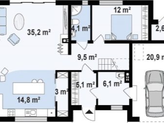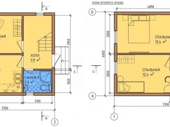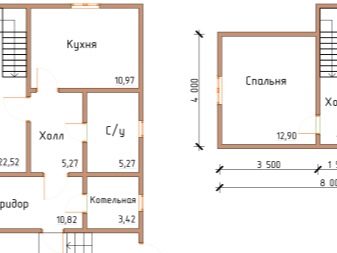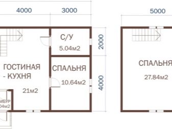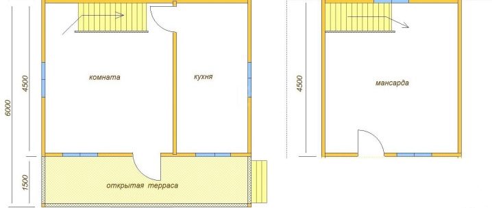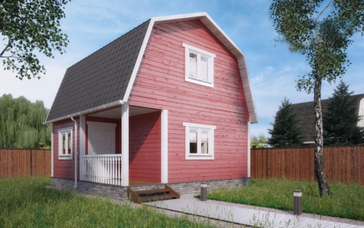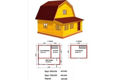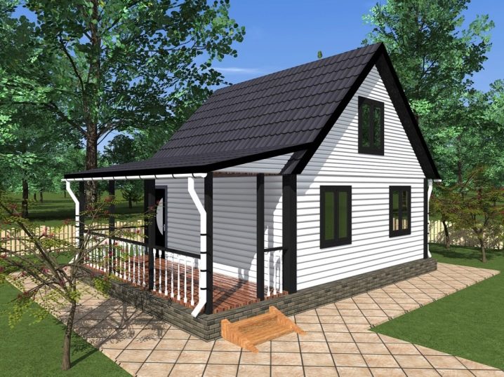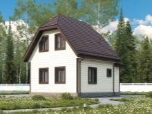 За семейство от 3-4 души е по-добре да се даде предпочитание на тавански конструкции, такива къщи имат оригинален дизайн. Обикновено пред входа се поставя малка тераса. На приземния етаж те оборудват кухня, комбинирана с хол, баня и помощно помещение.