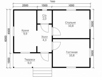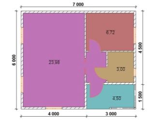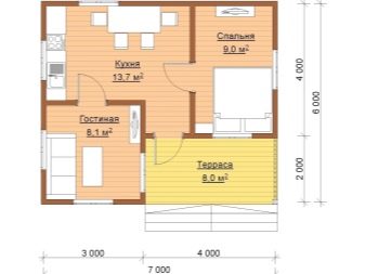 Къщите 6х7 м са компактни конструкции с почти квадратна форма. Най -често такива къщи се издигат в летни вили и градински парцели в условия на ограничено разпределение на земята или за малко семейство. Като се има предвид, че материалът на сградата е малък, най -често вътрешното пространство се освобождава от допълнителни носещи стени – оформлението е безплатно и при необходимост може да се промени.