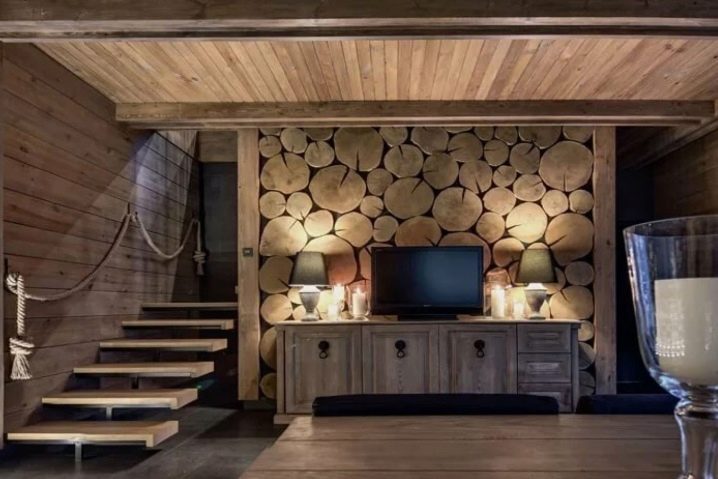 Дървото ще бъде добър избор за любителите на еко-стил, това е безопасен и много красив материал.. Дървесината обаче е податлива на изгаряне и гниене под въздействието на влага. Ето защо тя трябва да бъде покрита със специални импрегнации, които повишават устойчивостта на гъбички, както и да избягват огъня на стената. Но дървото изглежда грандиозно в интериора, такива стени обикновено не са измазани или боядисани, оставяйки в тяхната девствена красота.