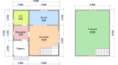 Изграждането на таванска къща с площ 6х7 м може значително да спести пари за строителни работи. Инсталирането на тавански блок ще струва много по -малко от пълен втори етаж. Освен това може да бъде построен за един сезон. И използваемата площ ще се удвои в сравнение с едноетажната.