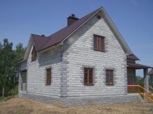 Най -често срещаното решение за такива къщи са блокове от пяна. Те осигуряват ефективна шумо и топлоизолация, издръжливи са и огнеупорни и такава къща може да бъде издигната за един месец. Разбира се, вътре такива стени не изглеждат много естетически приятни, така че допълнително ще трябва да извършите мазилка и декоративна облицовка на стени в къщата от блокове.