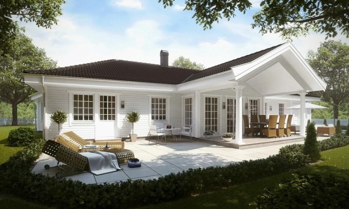 - американски. Американските домашни проекти са много популярен тип едноетажна сграда. Къщите са симетрични, заземени, към къщата има прикрепен гараж, декорацията е минимална, има няколко входа. Терасата в този вариант е задължителен нюанс на сградата..