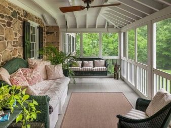 - Веранда. Почти същото, само затворено и винаги напълно прилежащо към къщата. В него може да няма отопление, но остъкляването е задължителен елемент..