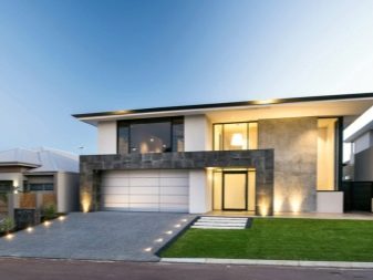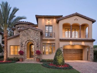 Най -често в допълнение към гаража и сауната, комбинирани с къщата, бъдещите собственици оборудват обширна тераса или зона за отдих с беседка. В повечето случаи сауна и гараж са разположени на първия етаж, докато вторият и третият етаж са заети от дневни, спални, детски стаи, офиси и други необходими помещения. Такива къщи обикновено са проектирани с балкон, а дори и не един.