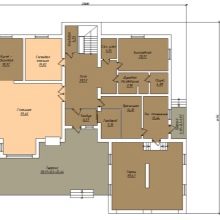 Планът на такава къща е обмислен предварително; не можете да го припишете на типични сгради. Следователно можете да изберете всякакви опции за местоположението на стаи и други стаи..