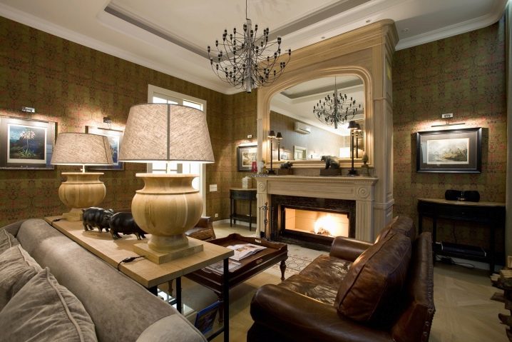 Почти задължителен елемент на всяка селска къща от средната класа е Пожарна. В интериора на хола в класически стил можете да инсталирате не само малка камина, но и пълноценна камина с дървена купчина, красиви мраморни рафтове и кресла наоколо.