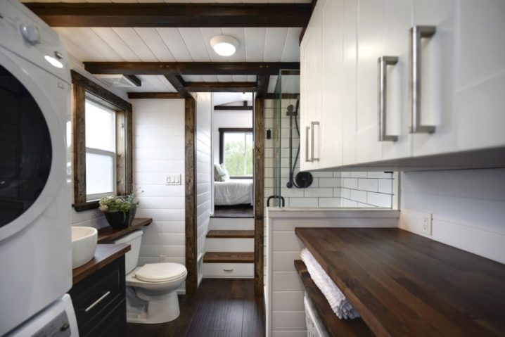 - За разтоварване на единствената всекидневна се използват трансформиращи се мебели и за увеличаване на пространството в комбинираната баня – сгъваеми водопроводни инсталации.