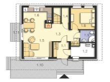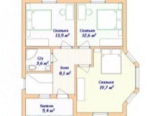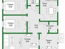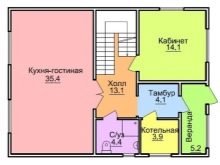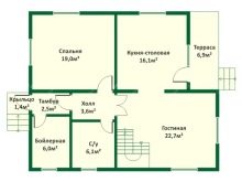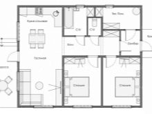 Ако в къщата живеят не 3, а 2 души, тогава една от спалните се комбинира с кухнята – образува се кухня -хол с площ от 38 м 2. Останалите помещения остават непроменени. В този случай гаражът и работилницата няма да се поберат тук – в противен случай къщата би приличала отдалечено на пчелни пити поради възможността за изграждане на дузина малки стаи от по 8 м 2 всяка и това ще развали целия план.