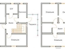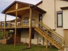 Този подход не е широко разпространен – преобладаващото мнозинство предпочита да построи два етажа с общ вход и вътрешно вита стълба.. Опцията с отделен вход горе ще бъде оценена от семейства, които предпочитат да живеят независимо един от друг. В този случай къщата се превръща в двуфамилна къща, построена в общ двор – половините й са разположени не една до друга, а една над друга, отделно на етажи.