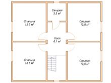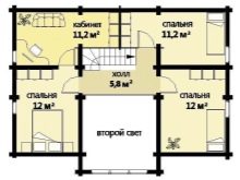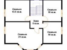 На втория етаж оформлението остава същото, като се има предвид, че коридорът се разширява до зоната, която е запазена за котелното помещение на първия етаж. Или планът остава непроменен и същото отделение може да се използва като малко помощно помещение, малка килер. Ако таванското помещение действа като втори етаж, тогава неговата полезна площ може да бъде намалена от 8X10, да речем, до 8X8 (от 80 на 64 m 2). Тук има смисъл да подредите следните стаи: