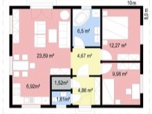 Готовите проекти 8X10 предполагат, че общата използваема площ е 80 m 2. В тях могат да се поставят следните стаи: