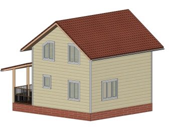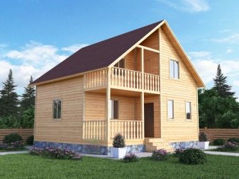 Най -често къщи с ъглови рамки. Площта може да варира от 60 до 90 кв. м в зависимост от броя на етажите. Вратите и прозорците се избират според вида на използвания довършителен материал и изискванията за къщата.