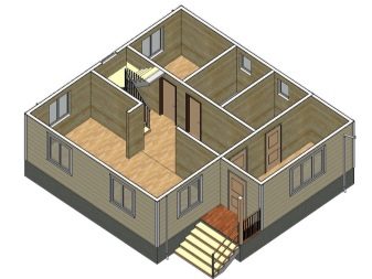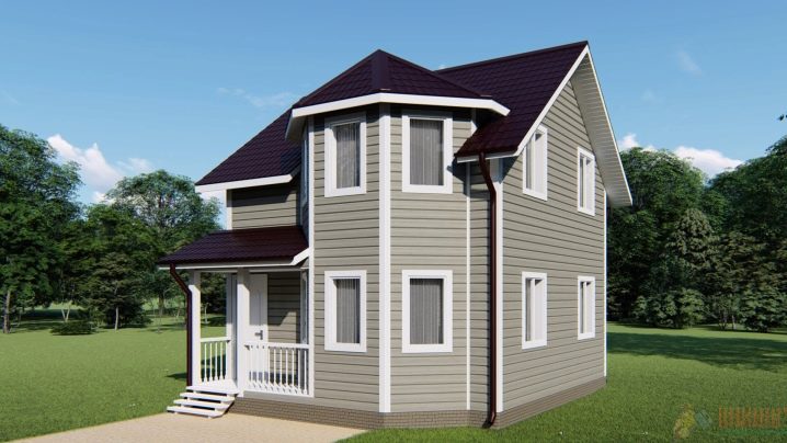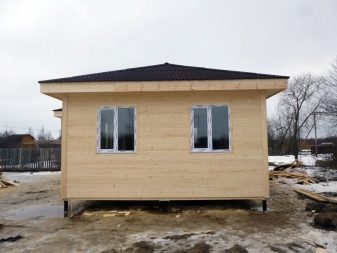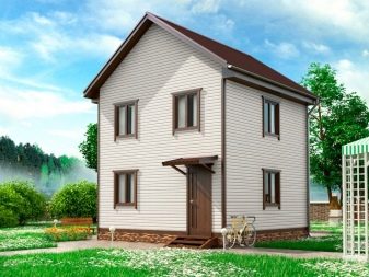 Най -често къщи с ъглови рамки. Площта може да варира от 60 до 90 кв. м в зависимост от броя на етажите. Вратите и прозорците се избират според вида на използвания довършителен материал и изискванията за къщата.