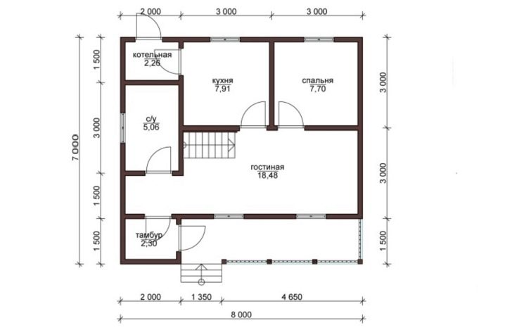 Площта на 7×8 е общо около 55-56 кв. м. Но дори след приспадане на стените и друго неизползвано пространство, остават около 50 квадратни метра. м. И с умел подход можете да извлечете максимална полза от такова пространство.. За да постигнете това, трябва правилно да изберете материала, включително. Много експерти смятат, че рамковата къща 7х8 м е добро решение..