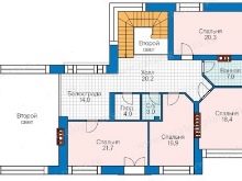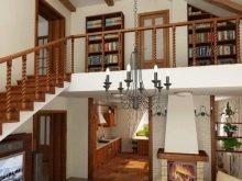 Като цяло проектът се изчислява така, че да не се налага допълнително разрушаване на прегради, например чрез комбиниране на спални. Втората светлина в хола впоследствие се преобразува в две пълноценни стаи на различни етажи, за това е необходимо само да се изгради висококачествен междуетажен таван, разделящ огромната стая на две независими. Това дава възможност за значително увеличаване на общия квадратен етаж на два етажа – и това е типично за собствениците, от няколко години наситени с „дворцовата“ архитектура и изключителния дизайн на селска къща.
