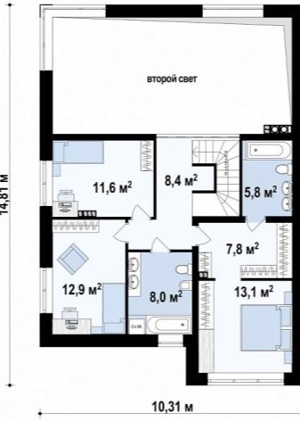 Ако се изисква сравнително малка къща с втора светлина, тогава проектът се променя, така че допълнителни черни спални, работилница и гараж отсъстват от чертежа. Малка къща значително ще намали разходите за строителство. Факт е, че квадрат от 100 м2 може да доведе до крайна сума над 2 милиона рубли. Особено се увеличава поради разходи, не само като се вземат предвид качеството и цената на строителните материали като такива, но и поради изключителния дизайн, който такава къща ще изисква..