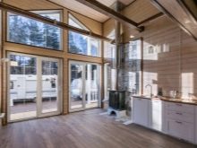 Акустиката в такава стая също е на прилично ниво: като поставят мощни високоговорители, собствениците на къщата ще създадат ефект на пространствен звук, като в кино.