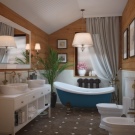 Препоръчително е да се осигурят две бани в средно голяма вила. Освен това, ако в него ще живее голямо семейство, тогава трябва да се даде предпочитание на отделния тип. Обикновено една от тоалетните се намира в зоната на спалнята, а другата в коридора. Добре е, ако има два входа, които са разделени на основен и допълнителен. Вторият най -често води до терасата или до гаража..
