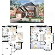Можете да планирате първия етаж по ваша преценка, основното е, че той не противоречи на правилата за безопасност при проектирането на жилища. На втория етаж можете да поставите голяма спалня с две детски или спални за гости, голяма баня и тераса. Можете също да изберете опцията, когато на последния етаж има три или четири спални с различни размери, баня и коридор.