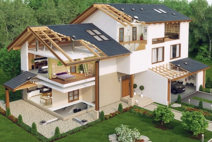 Сред интересните съвременни проекти се открояват вили във футуристичен стил. Особено удобен е вариантът, при който има гараж за 2 коли и няколко хола.