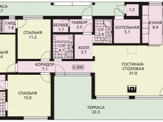 В същото време стандартното оформление предполага, че на приземния етаж, освен гаража, ще има кухня с хол, складово помещение и баня за гости. Често се създават допълнителни помещения в мазето и на тавана. Най -често се използват за сауна, игра или фитнес зала..
