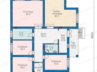 Внимателно планиране на зони. На територията може да има няколко от тях – кухня и трапезария, хол, киносалон или билярдна зала. Броят на баните зависи от това колко хора ще живеят в къщата постоянно. Обикновено те се правят поне 3-4, а банята трябва да присъства поне в 2. И също така в такъв проект е необходимо да се предвиди наличието на чисто технически помещения: котелни помещения, котли, помпени помещения, перални..
