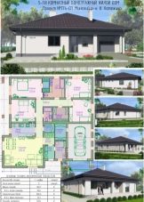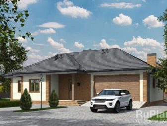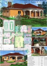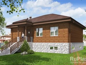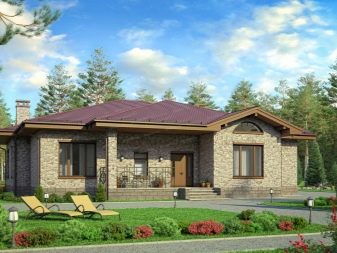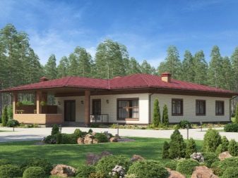 Оформлението на едноетажни къщи с голяма площ е доста разнообразно. Обикновено веднага се издига сграда с гараж, оранжерия, котелно помещение, просторни тераси.