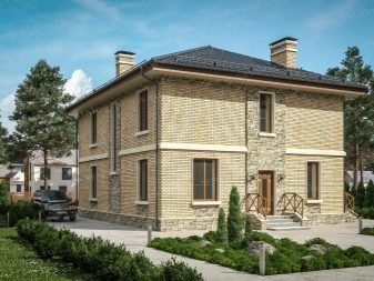 Къщи с площ от 200 кв. m се издигат върху парцели с поне 20 декара, тъй като на по -малка площ голяма сграда ще изглежда твърде тромава, ще има проблеми с планирането на територията. Обектите могат да бъдат издигани от различни материали, много зависи от архитектурния стил и други свързани фактори. Например, за сезонен живот или строителство в региони с топла зима, можете да изберете проект, изработен от ламиниран фурнир или рамка, сглобяема. По-добре е незабавно да се построи капитална сграда за целогодишно ползване от тухли или газобетон, блокове от пяна. Тази опция е подходяща за семейни вили с 1 или 2 етажа и 200 квадратни метра.