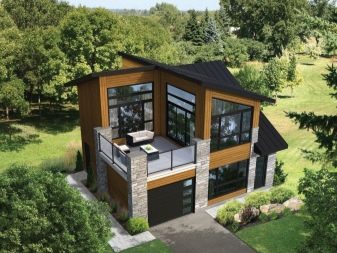 Къщите с мазе и тераса се считат за сравнително малки с площ от 90 до 100-105 м2. В един от тези проекти площта на подземния слой е малка – само 6,4 квадратни метра. м. На първия етаж има място за: