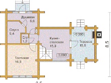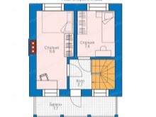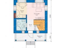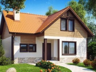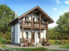Къщите с мазе и тераса се считат за сравнително малки с площ от 90 до 100-105 м2. В един от тези проекти площта на подземния слой е малка – само 6,4 квадратни метра. м. На първия етаж има място за:
