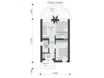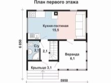 Затвореният тип тераса ви позволява да се наслаждавате на комфорта дори при студено време. Площта на верандата достига 6,1 кв. м. Вътре освен нея има 15-метрова кухня и всекидневна. На таванския етаж има спални с площ от 9 и 8.7 м2. Между тях има малка празнина, изпълнена с втора светлина..