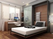 Писмената маса, ако е необходимо, се раздалечава и се превръща в пълноценна маса за хранене. Леглото може да бъде сгънато и скрито в повърхността на гардероба. Над леглото към тавана е монтиран телевизор с дистанционно управление.